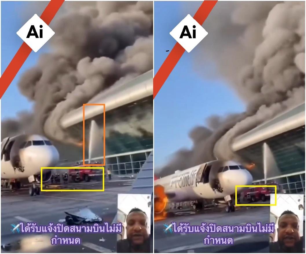 A further analysis by AFP has identified other visual inconsistencies commonly found in AI-generated content, including a fire truck spraying water at the terminal building's ceiling rather than the flame and firefighters abruptly disappearing.