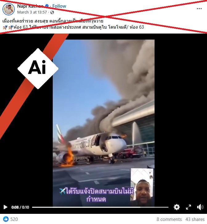 "Reports from foreign media say Dubai airport has been attacked," reads a Thai-language Facebook post published on March 3, 2026.