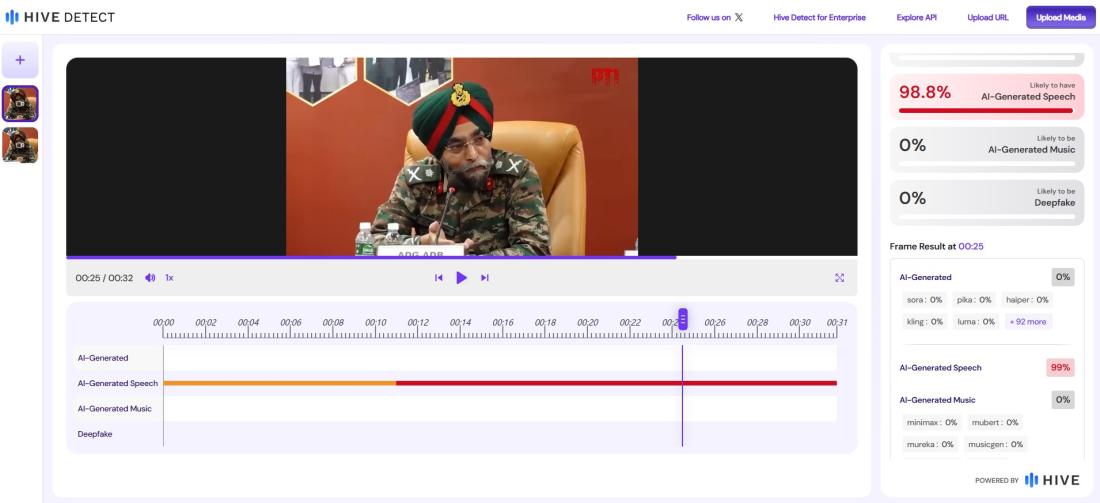 AFP ran the clip through the Hive detection tool which found its audio is 98.8 percent likely to be AI-generated (archived link).