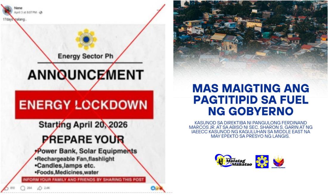 Peña-Reyes noted the viral claim appears to conflate the oil supply crunch with power failure, but said the country still has enough power supply for now.