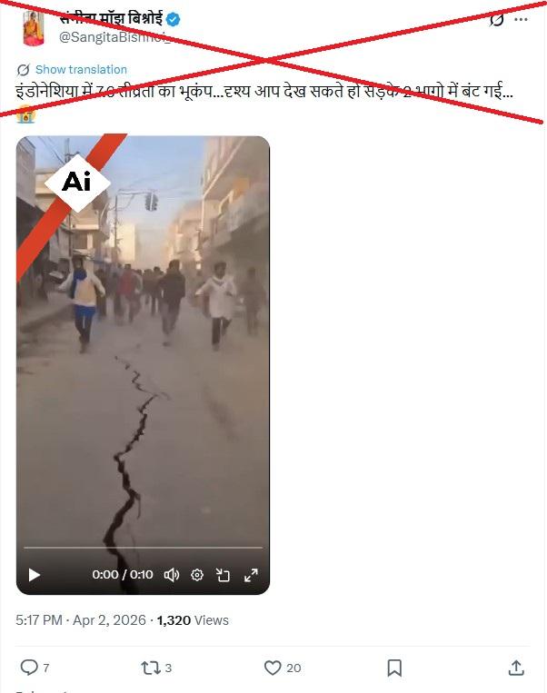After a powerful 7.4-magnitude quake struck off the coast of eastern Indonesia on April 2, 2026, footage surfaced in India in social media posts that falsely claimed it captured a moment of extreme panic among affected residents. The video is AI-generated, and an analysis found mistakes that indicate it is inauthentic.