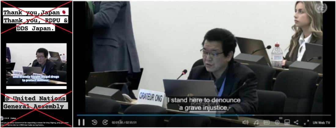 NGO speech at UN falsely touted as Japanese government's call to free ex-Philippine leader