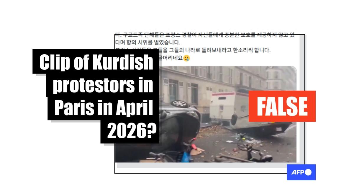 South Korea's acceptance of more immigrants in recent years to address the problem of its rapidly shrinking workforce has also fuelled anti-foreigner sentiment in the country, but footage circulating on social media purportedly showing a recent "riot" by immigrants in Paris is several years old. The Paris police told AFP no such protest had occurred in the French capital in recent months. The footage in fact comprises clips filmed in December 2022, during furious protests sparked by the fatal shooting of three Kurds in the French capital.