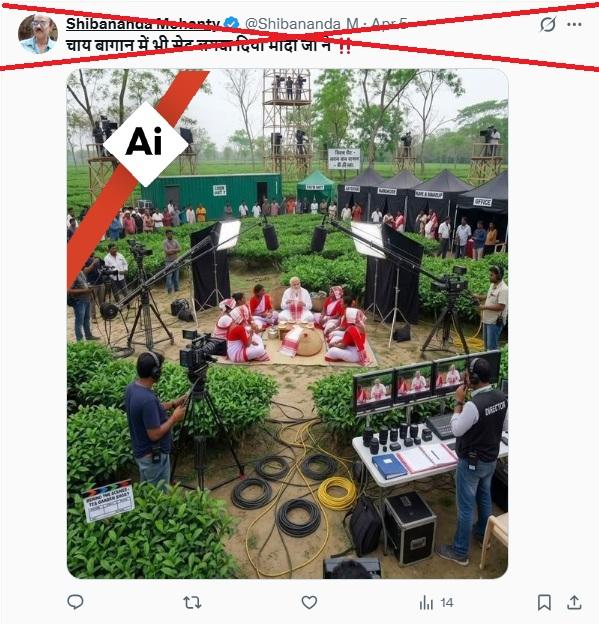 "Modi has put up a set in the tea garden too," reads the Hindi-language caption of an image shared on X on April 5, 2026.