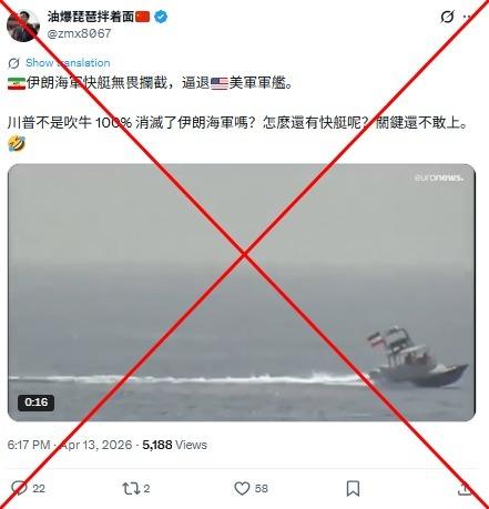 "Iranian navy speedboats fearlessly intercepted and forced back a US warship. Didn't Trump brag that he had 100 percent wiped out the Iranian navy? How come there are still speedboats? And the main point is they didn't even dare to confront them," says the traditional Chinese X post shared on April 13, 2026.