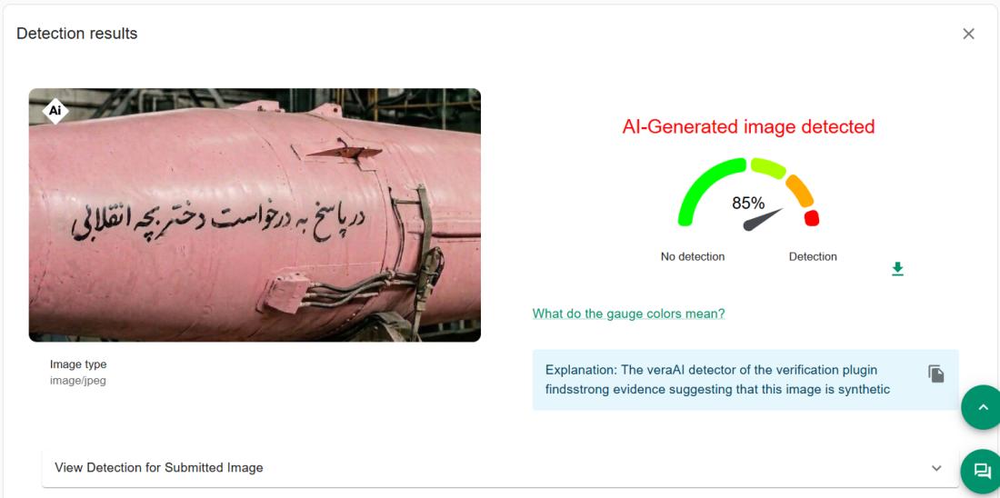 VeraAI returned a result of 85 percent.