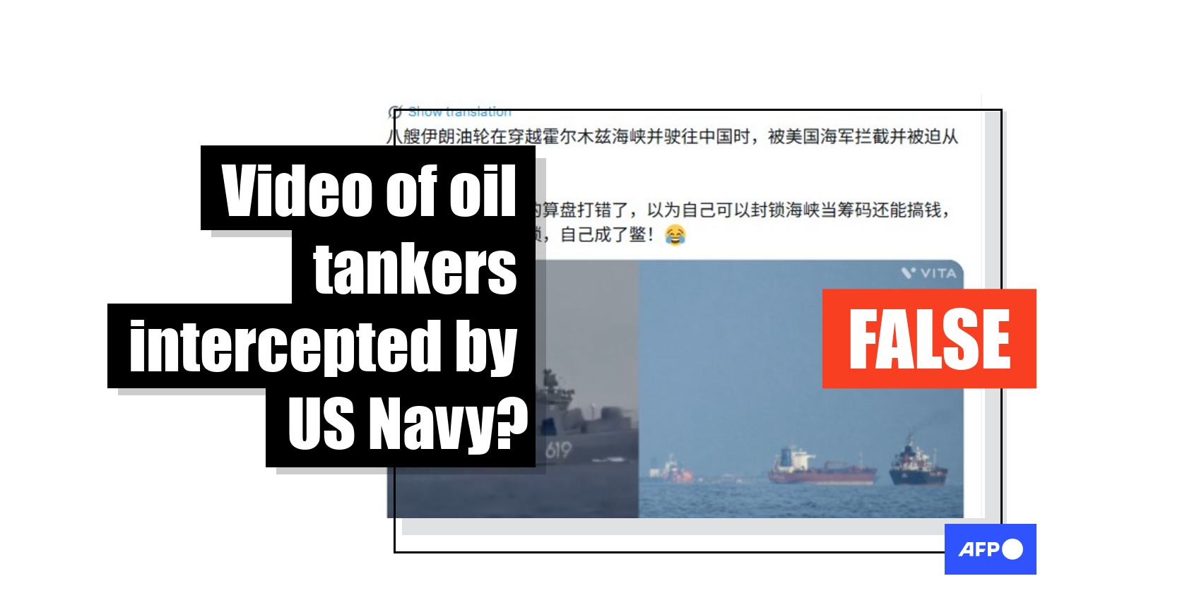 The video used in the posts also does not show a US Navy warship or oil tankers that were forced to turn around, as claimed.