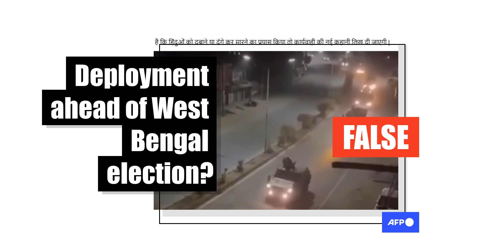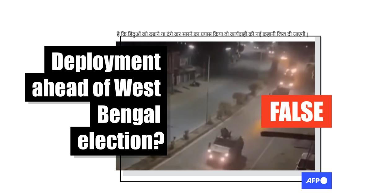 The Indian government has said it will increase security ahead of crucial elections in West Bengal state, where political violence is common, but footage of military trucks on a deserted street circulating in posts is old and from a different state. AFP was able to geolocate the clip to northeastern Manipur state.