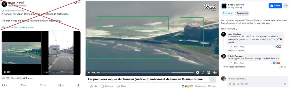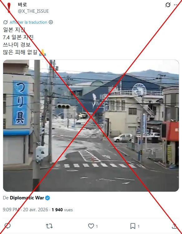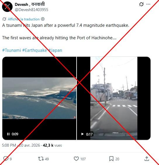 "A tsunami hits Japan after a powerful 7.4 magnitude earthquake," reads part of the caption to two videos shared on X on April 20, 2026.