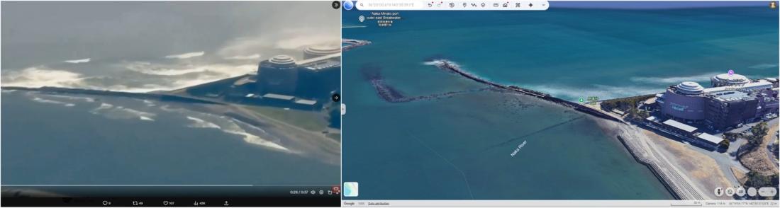 The video corresponds to Google Earth satellite imagery of the town of Oarai in Ibaraki Prefecture, around 450 kilometres (279 miles) south of Kuji -- where the 80-centimetre tsunami wave was recorded on April 20, 2026 (archived link).
