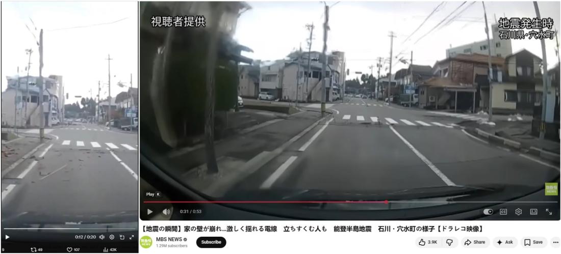 A separate reverse image search on Google using keyframes from the video of a city street shaking led to a longer, uncropped version shared on YouTube by Japan's MBS News on January 11, 2024 (archived link).