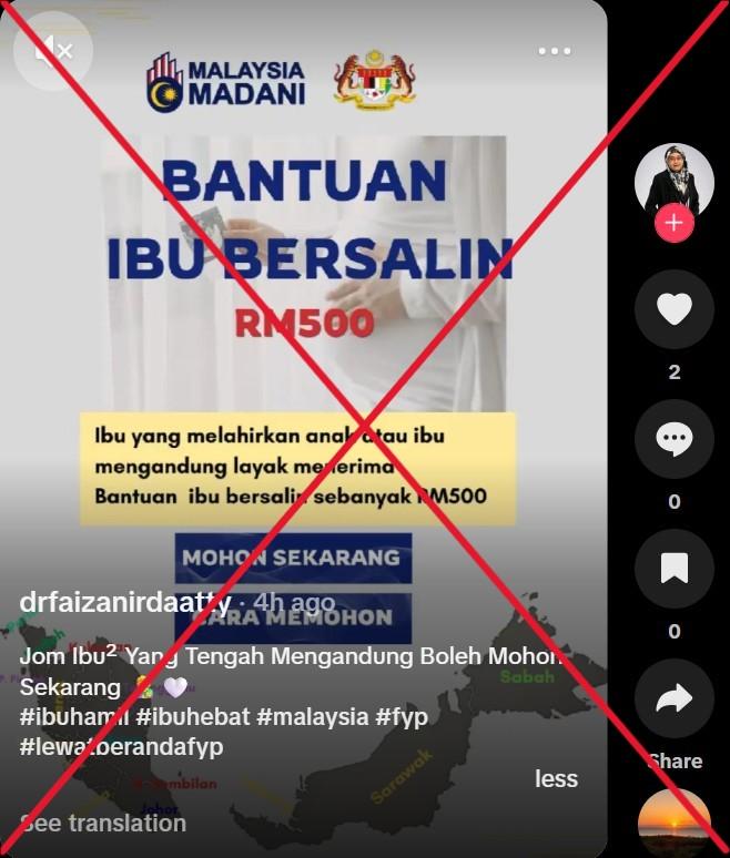 Similar posts were shared elsewhere on TikTok, but the Malaysian government is not providing aid to expectant mothers or those who have recently given birth.