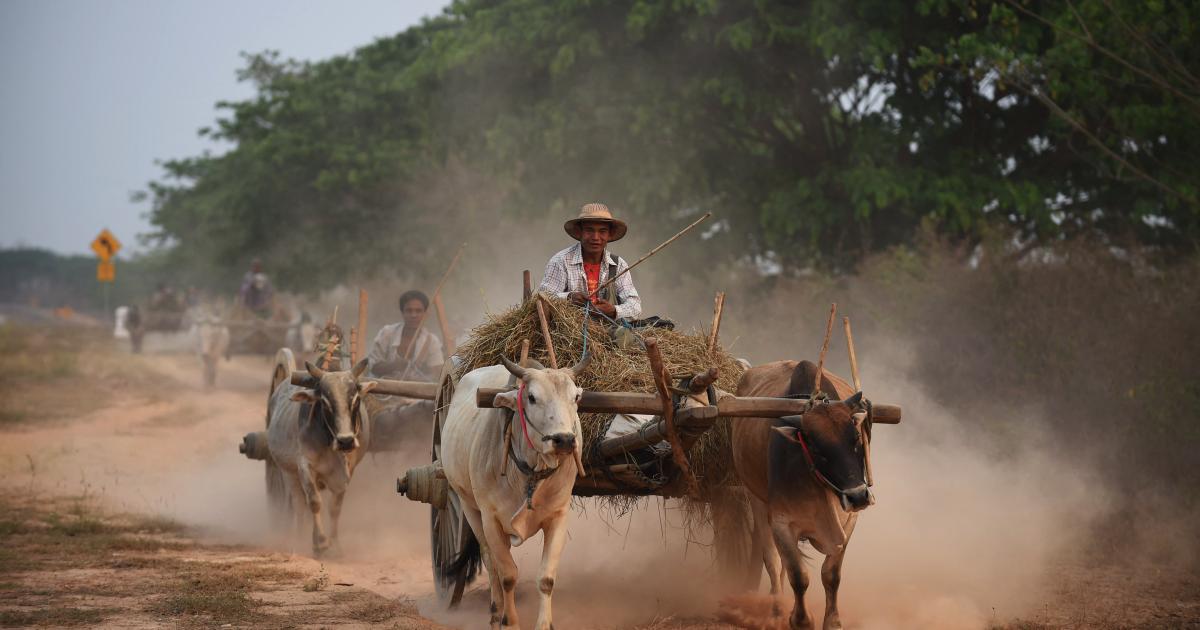 The Burmese-language headline at the bottom of the purported news screenshot reads: “MWD: According to the section 969 (b), if a household owns more than two oxen, extra oxen will be nationalised.”