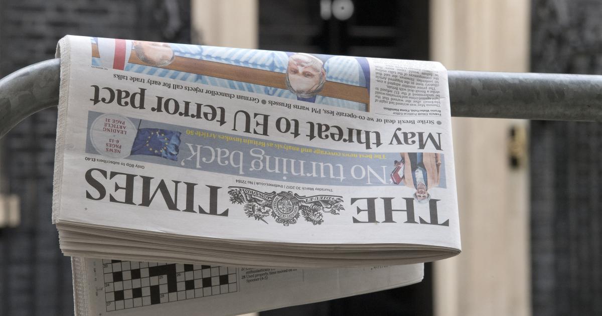 According to the article, the fabricated front page first appeared on Twitter, but was taken down after The Times parent company News UK asked the social media platform to remove the post.