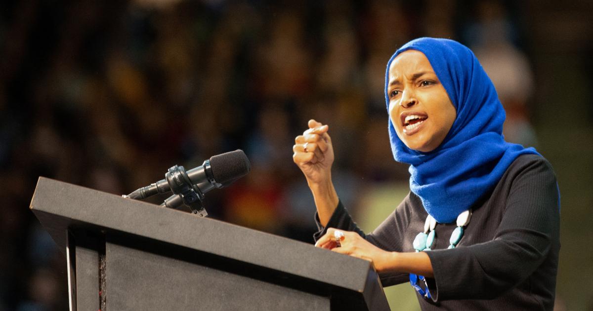The image features five US Democratic Representatives, from left to right: Rashida Tlaib of Michigan; Ilhan Omar of Minnesota; Jamaal Bowman of New York; Alexandria Ocasio-Cortez of New York;Cori Bush of Missouri; and Ayanna Pressley of Massachusetts.