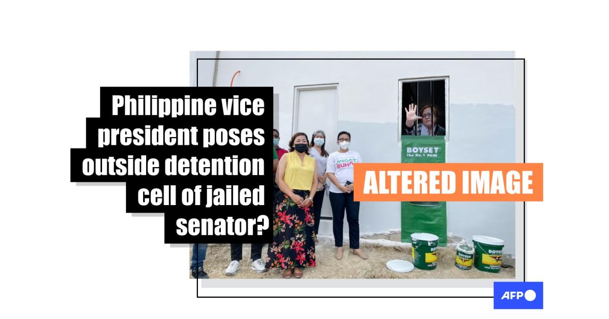 Doctored photos falsely show Leni Robredo posing outside detention cell of jailed senator