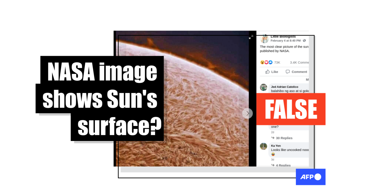 The photo was published on Facebook here on February 4, 2021. The post reads: “The most clear picture of the sun surface published by NASA”.