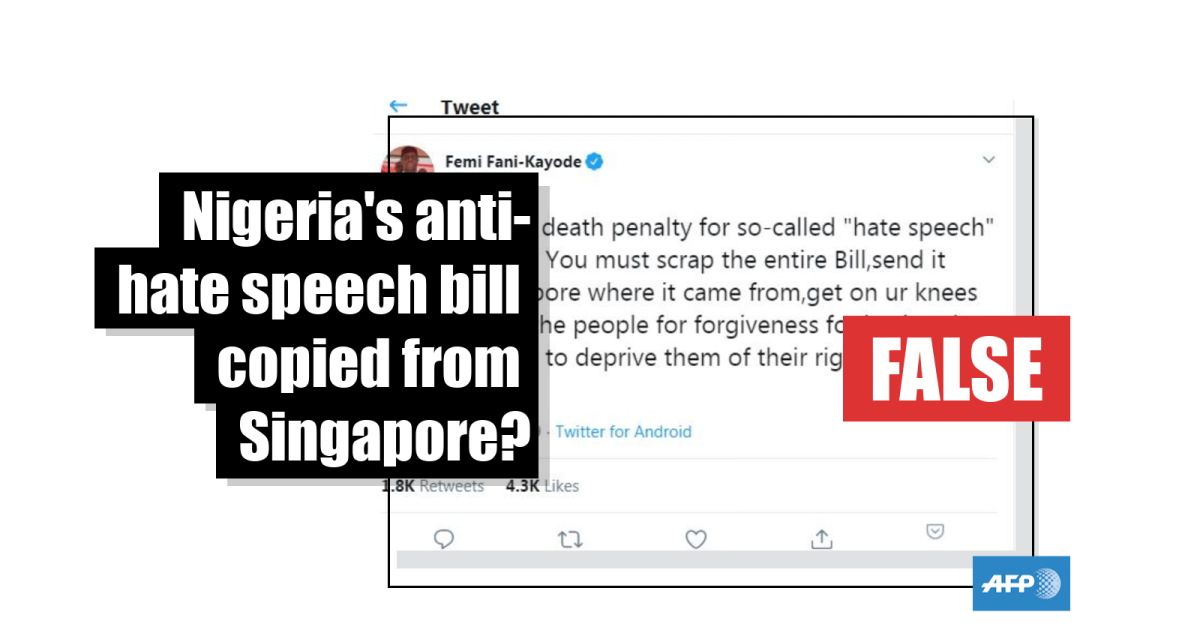 An ex-minister claimed Nigeria’s anti-hate speech bill was imported from Singapore. No, it wasn’t -- here is how the two countries’ legislation compares.