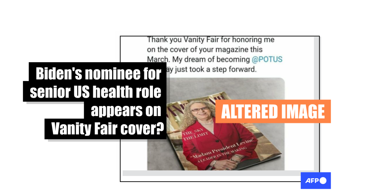The picture appears to show the cover of Vanity Fair magazine featuring Rachel Levine, who was revealed last month to be US President Joe Biden’s nominee for assistant secretary of health. If her nomination is approved by Senate, she will become the highest-ranking transgender official in US government.