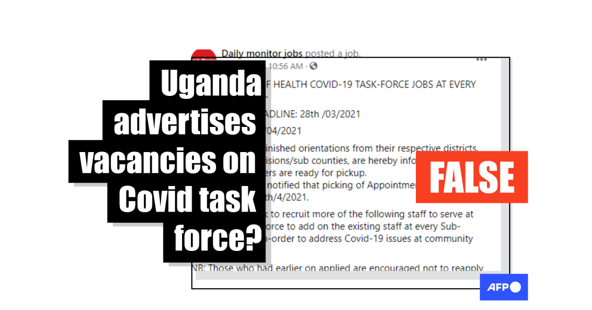 “We have not placed an ad for jobs on Facebook. The ‘Daily monitor jobs’ is a fake account that advertises non-existent jobs and extorts money from job seekers,” spokesman Emmanuel Ainebyoona told AFP Fact Check.