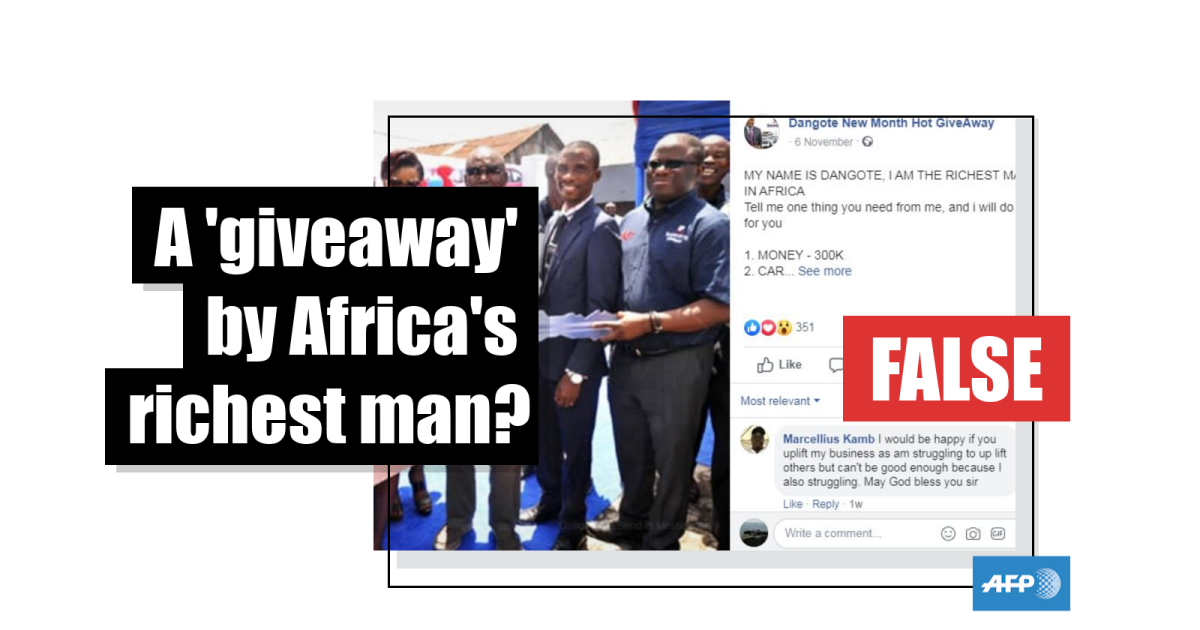 Facebook page claims to represent Africa’s richest man and promises ‘hot giveaway'