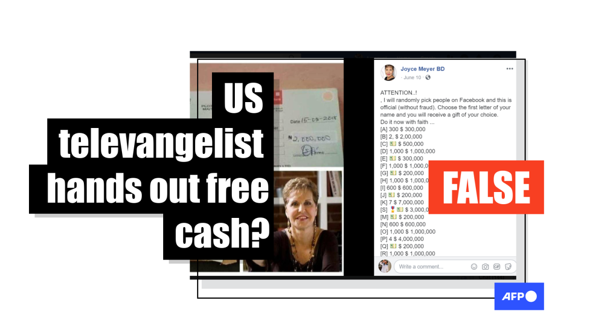 This Facebook page doesn’t belong to US televangelist, free cash giveaway is a scam