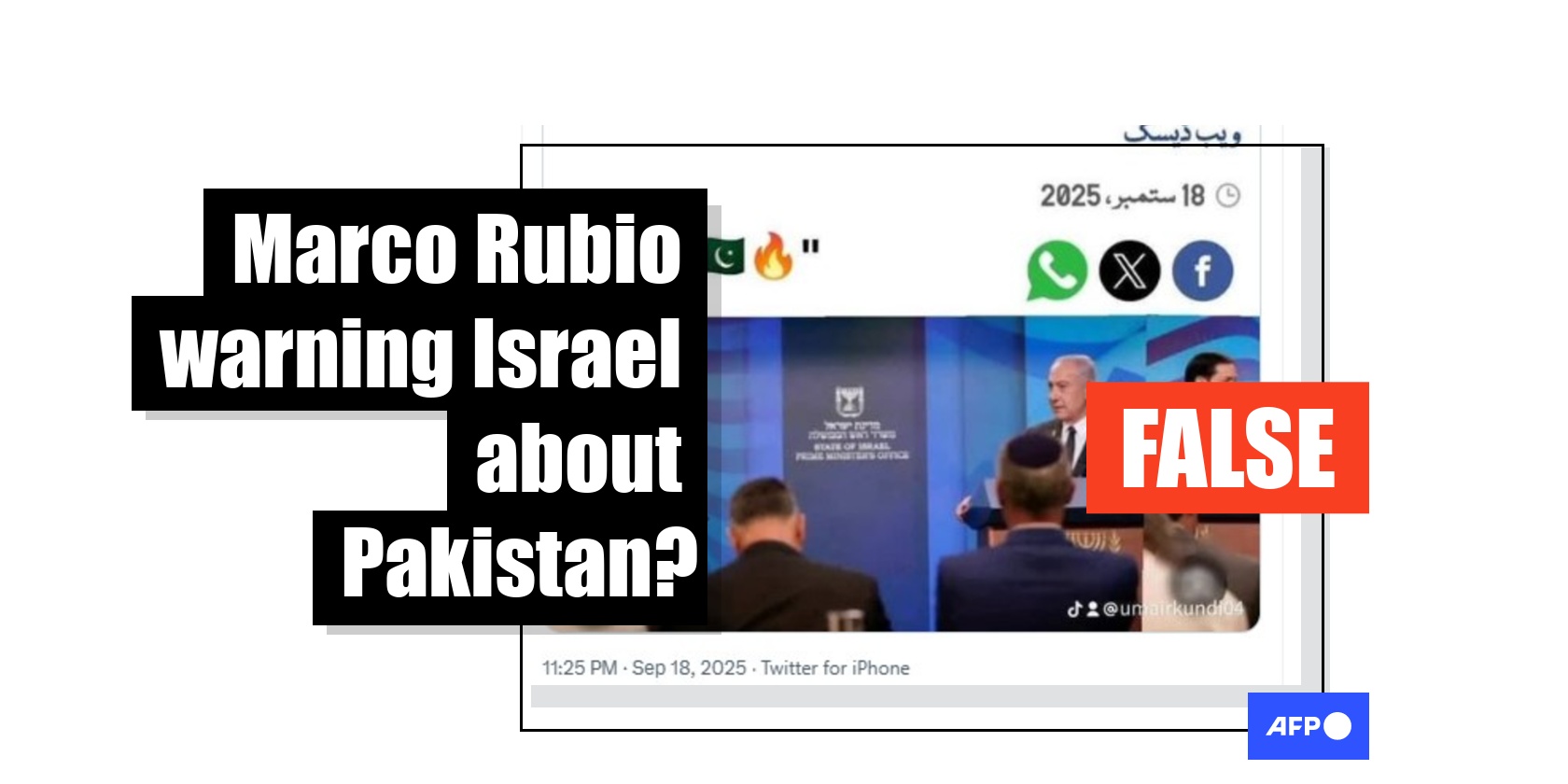 Copyright © AFP 2017-2025. All rights reserved. Users can access and consult this website and use the share features available for personal, private, and non-commercial purposes. Any other use, in particular any reproduction, communication to the public or distribution of the content of this website, in whole or in part, for any other purpose and/or by any other means, without a specific licence agreement signed with AFP, is strictly prohibited. The subject matter depicted or included via links within the Fact Checking content is provided to the extent necessary for correct understanding of the verification of the information concerned. AFP has not obtained any rights from the authors or copyright owners of this third party content and shall incur no liability in this regard. AFP and its logo are registered trademarks.