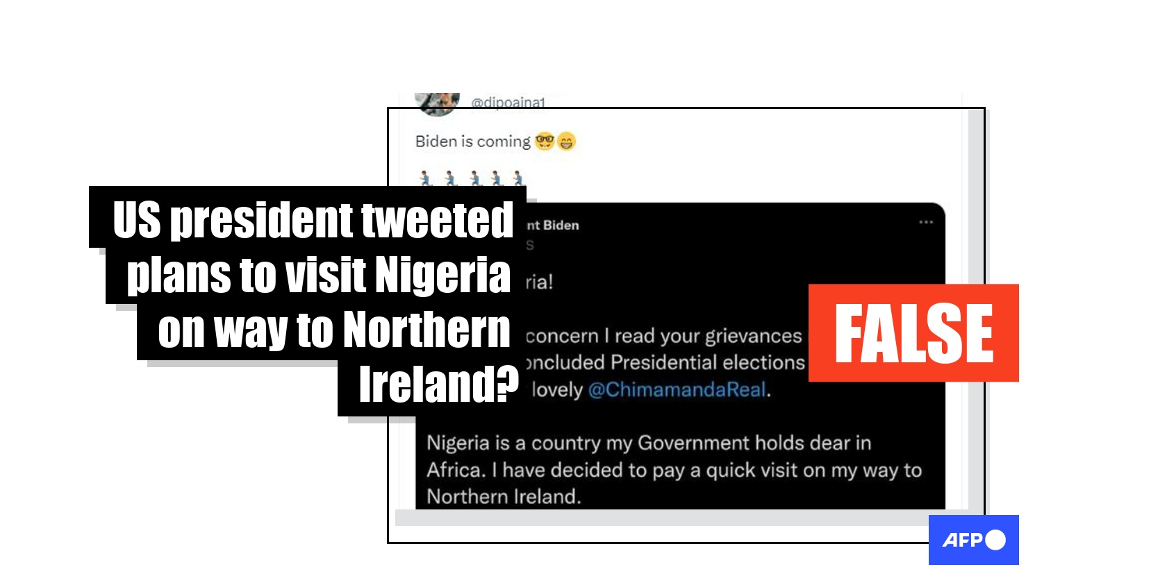Tweet falsely claims Joe Biden announced Nigeria stopover en route to N. Ireland Published on October 23, 2025 at 20:41