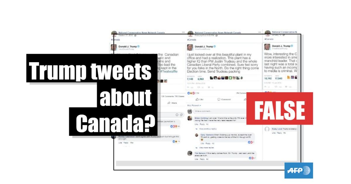 The most shared screenshots of the tweets were published to the National Conservative News Network Canada Facebook group, which has nearly 200,000 followers and regularly publishes political media content. AFP Fact-Check examined three tweets published on October 27, 2018, January 10, 2019 and February 6, 2019 respectively.