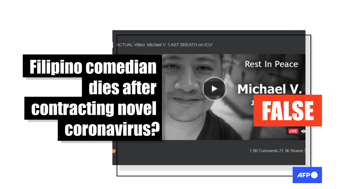 AFP contacted the comedian’s management team for comment on July 23. They referred us to this interview Michael V. gave to Filipino broadcaster GMA News on July 22, 2020, in which he debunked the death rumours.