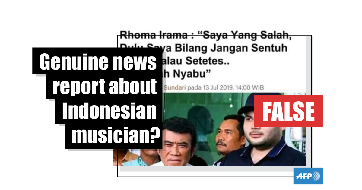 The doctored screenshot was published in this July 26, 2019 Facebook post about Indonesian singer Rhoma Irama. It shows a purported news report from Indonesian news outlet Liputan6.com.