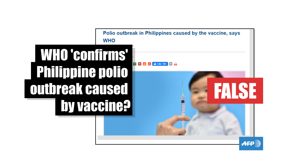 When approached for comments on the misleading claim, a WHO representative told AFP in an email on November 7: “The polio outbreak in the Philippines was not caused by the polio vaccine.”
