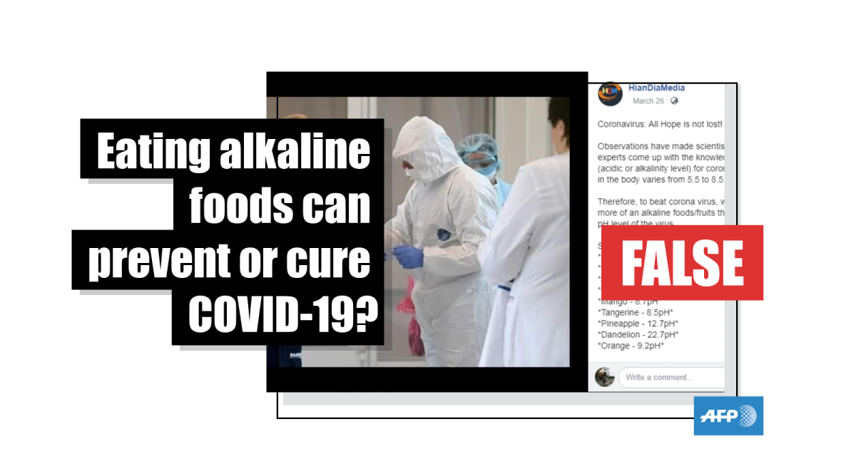 However, the claim is false; health experts say there is no evidence that eating alkaline foods can help prevent or cure COVID-19.