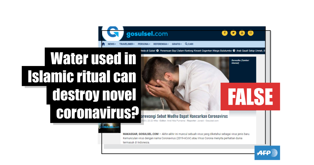 This report by Gosulsel.com published on January 27, 2020 cites a doctor who claims Islamic ablution water can destroy coronavirus.