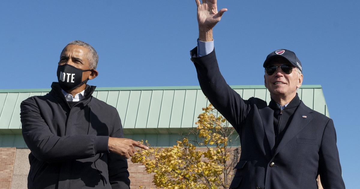According to the timestamps in the screenshots, Biden tweeted at 8:54 pm followed by Obama at 8:59 pm on November 18, 2020.