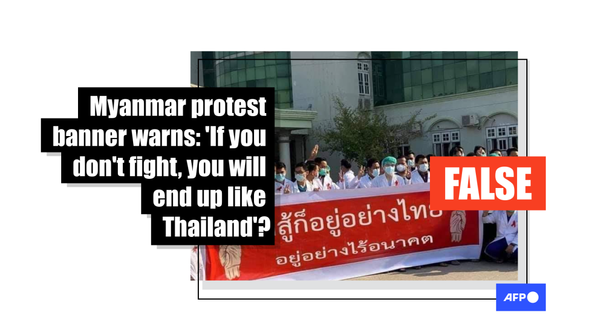 The Facebook post’s Thai-language caption reads: “Myanmar people’s banner. If you don’t fight, you will end up like Thailand without a future. They are telling the truth.”