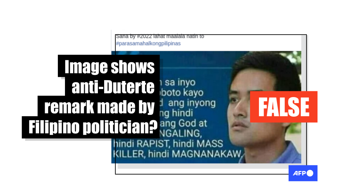 This image includes a fabricated anti-Duterte quote, falsely attributed to a Filipino politician