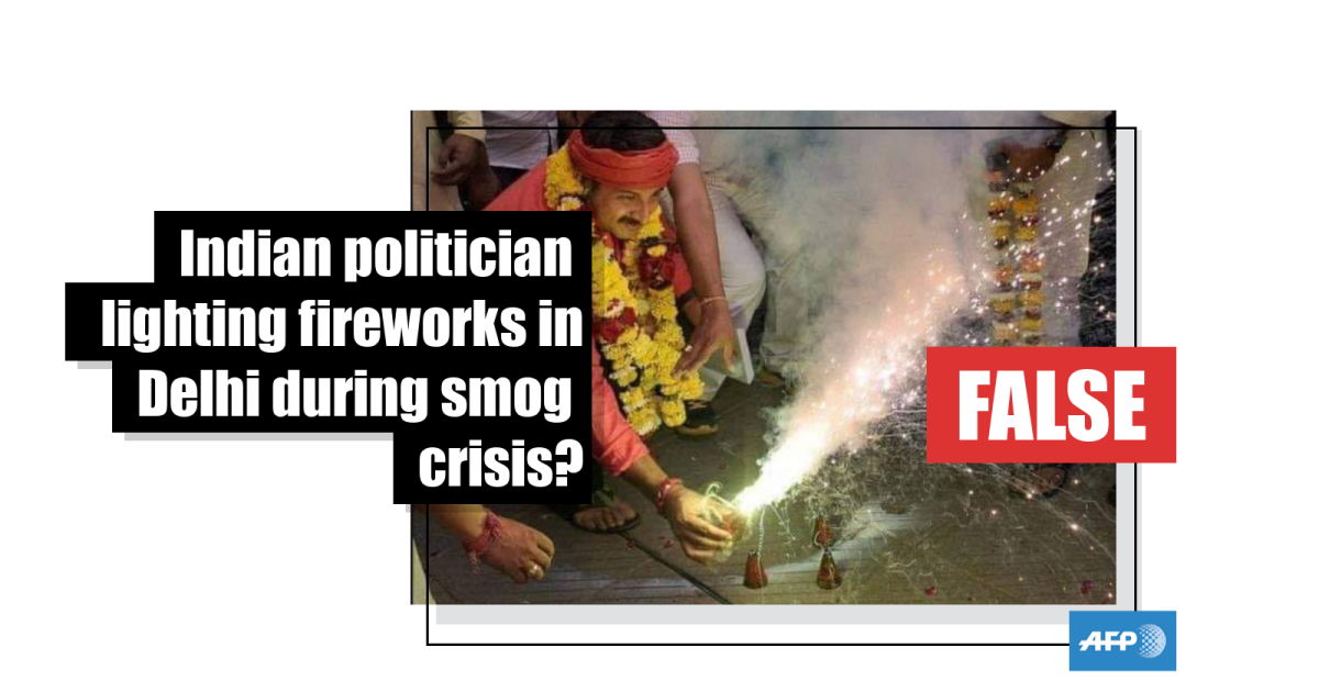 The claim is false; the photo has circulated in media reports since at least 2014. It shows the politician lighting fireworks to celebrate the Delhi government’s decision to establish a public holiday for a