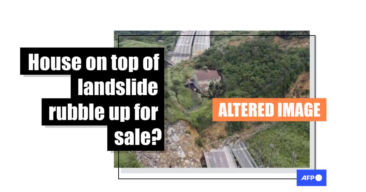 The image was digitally altered to insert the house on top of the landslide rubble.