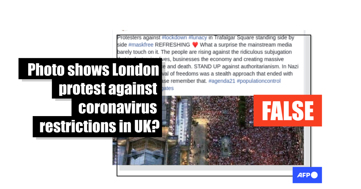 The post circulated one day after thousands gathered in London’s Trafalgar Square on August 29 to protest against coronavirus restrictions in England. Here is a report by UK newspaper The Guardian about the mass rally.