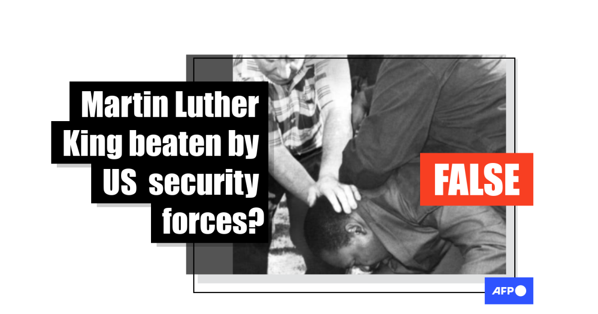 AFP Fact Check traced the image to the online archives of the Chicago Tribune newspaper, where it had this caption: “The Rev. Martin Luther King Jr. tries to regain his footing after being hit by a stone during an open housing march Aug. 5, 1966, but aides prevent him from rising to protect against further attacks.”