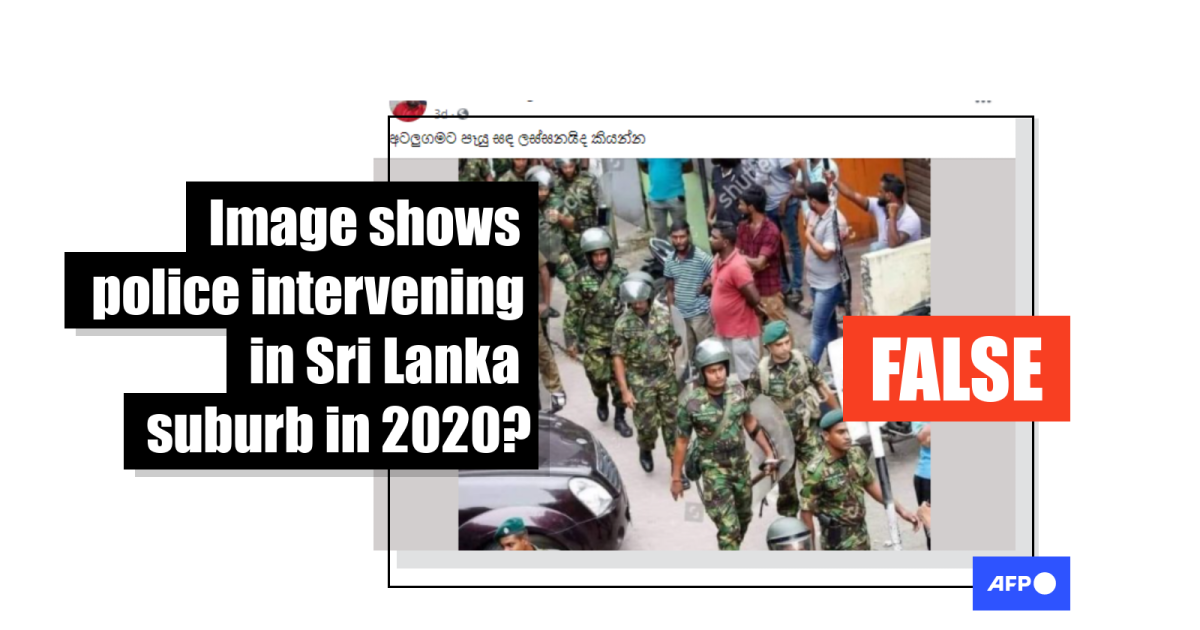 A reverse image search found that the photo in fact shows police responding to political unrest at the Ceylon Petroleum Corporation in 2018.