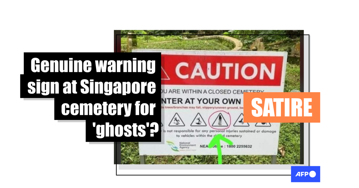 This image of a sign at a Singapore cemetery has been doctored to include a 'ghost' warning