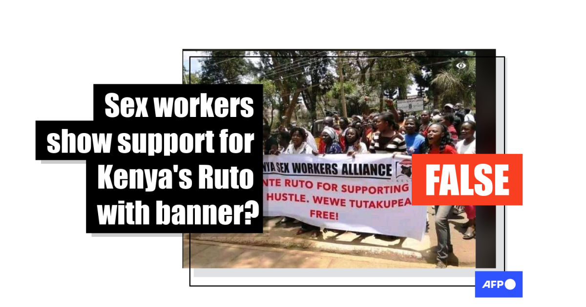 Alongside the claim is an image of women holding up a banner from the Kenya Sex Workers Alliance. The message on it reads: “Thank you Ruto for supporting our hustle, we will give you for free.”