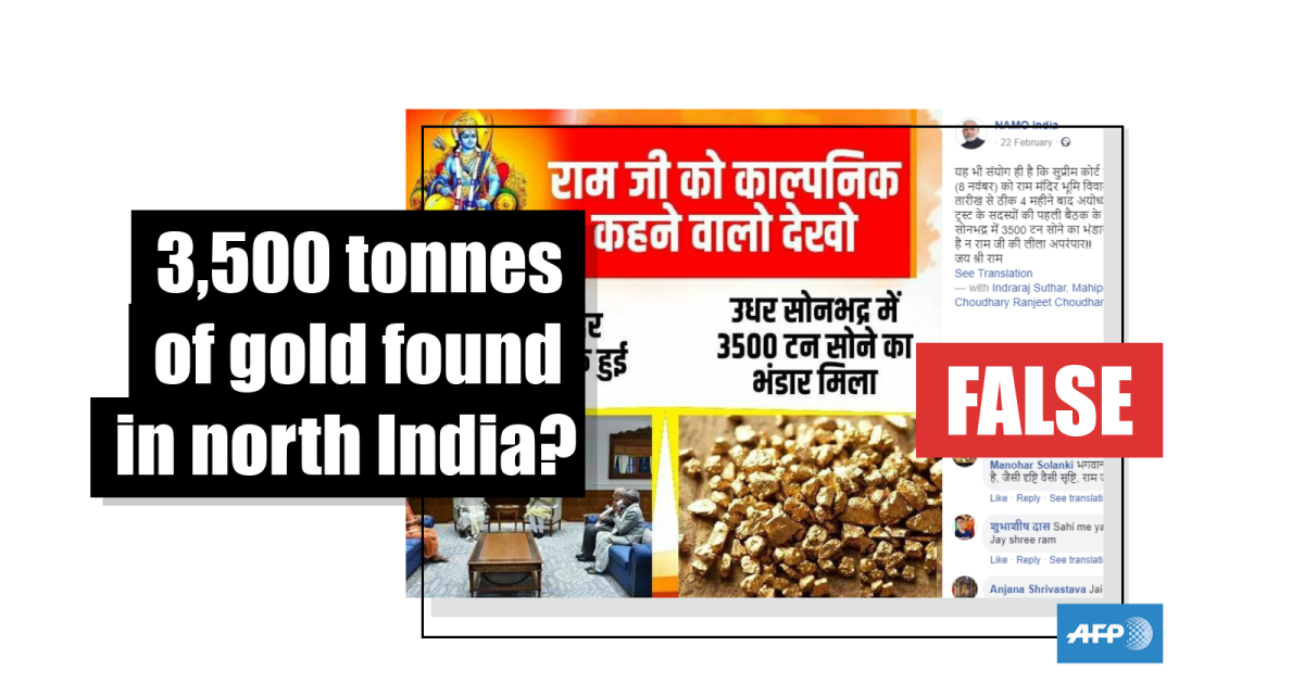 The claim is false; the Geological Survey of India (GSI) – the government’s national mining body – said the amount of gold discovered at the site was considerably less than 3,500 tonnes.