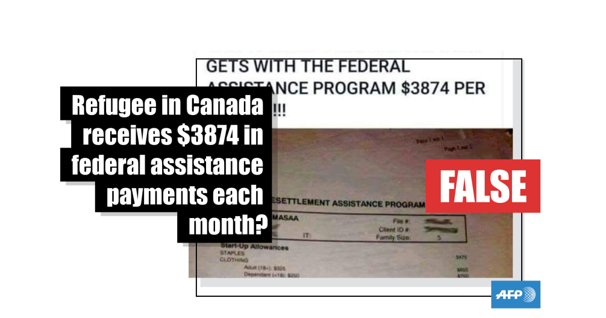 AFP analysed the document in the photo and found that although it appeared to be authentic, it does not detail payment to a single refugee. The center top box states, “Family size: 5.” The invoice also details a one-time “Start-up Allowance” which is not paid monthly.