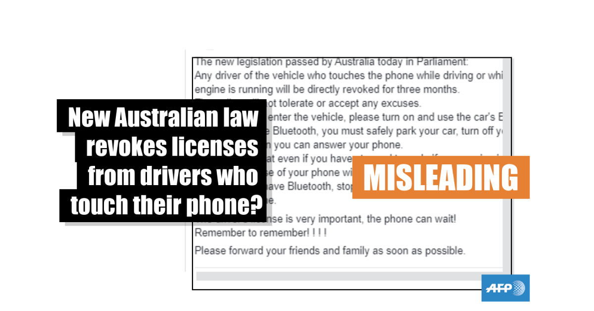 The claim is misleading; touching a phone while driving is illegal in Australia nationwide, but the punishment is a fine -- not the revocation of one’s license.