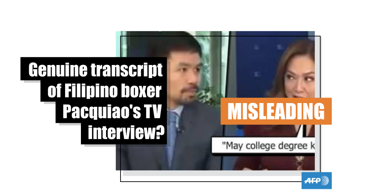 AFP has transcribed the part of the interview about Pacquiao’s college degree. Below is a full transcript, translated to English: