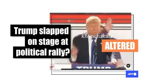 Image Donald Trump Published on 05/09/2024 Video of former US president Donald Trump getting slapped at a rally was digitally altered