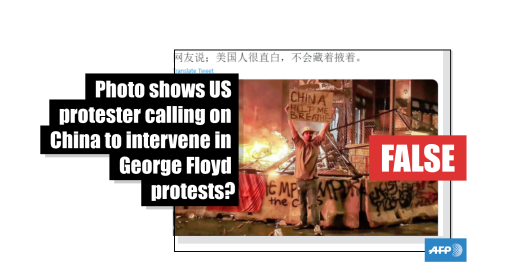 Image Published on 03/06/2020 This photo has been doctored to include a manipulated placard and the Chinese flag